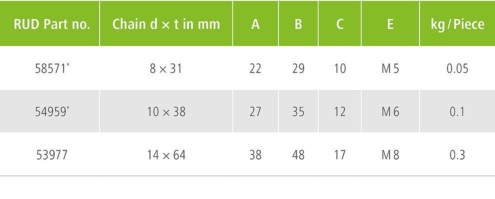 RUD RSP chain connector (spacesaving) can use in single and multi-strand conveyors. Runs over sprocket wheels (multi-part and single-part), grooved wheels and flat guide wheels.